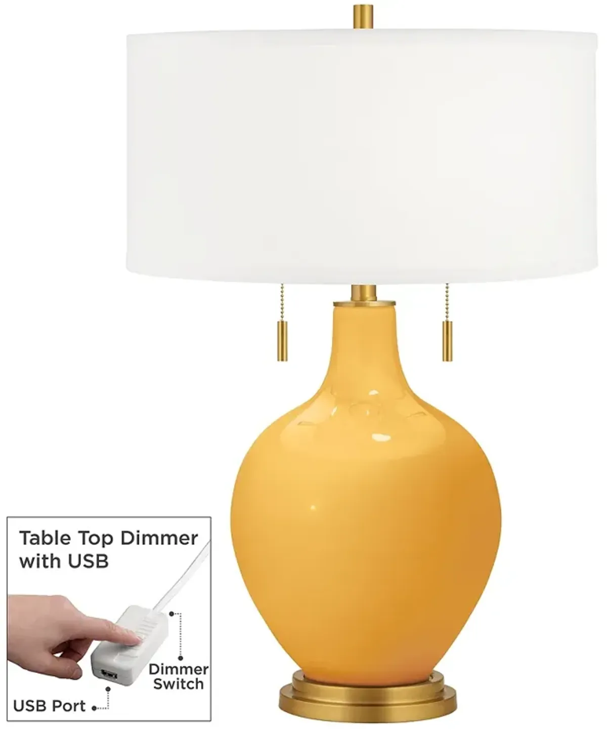 Color Plus Toby Brass 28" Marigold Yellow Table Lamp with USB Dimmer