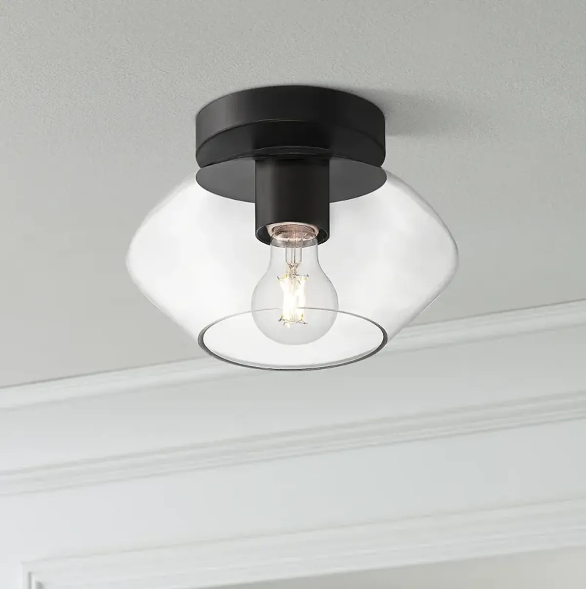 Possini Euro Gustin 8 3/4" Wide Black Clear Glass Ceiling Light