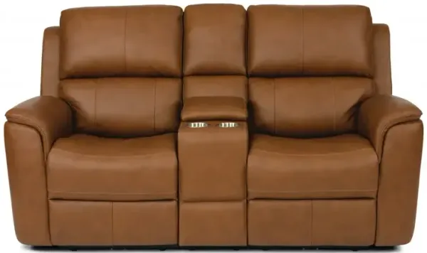 Flexsteel Henry Caramel Leather Triple Power Reclining Console Loveseat