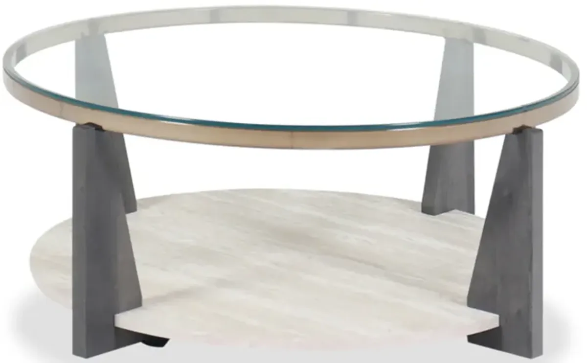 Hivvago 28 Inch  Brown Wood Round Coffee Table With Shelf