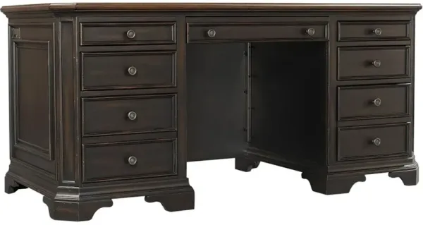 Martin Furniture Kingston Dark Chocolate Rub Through with Criss-Cross Detail Double Pedestal Desk