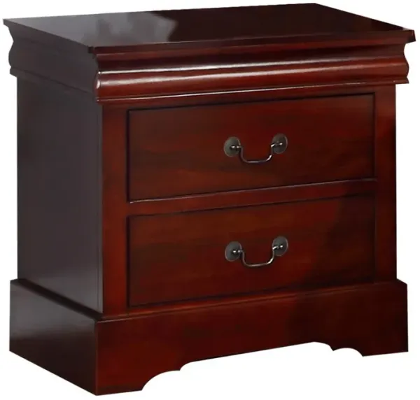 Liam 23 Inch 2 Drawer Wood Nightstand, Antique Drop Handles, Cherry Brown-Benzara