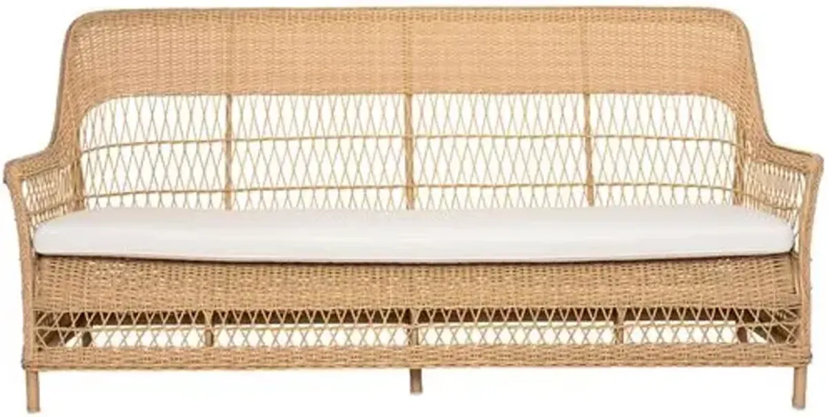 Weiss Coastal Cream Boucle Natural Rattan Outdoor Sofa - 97"