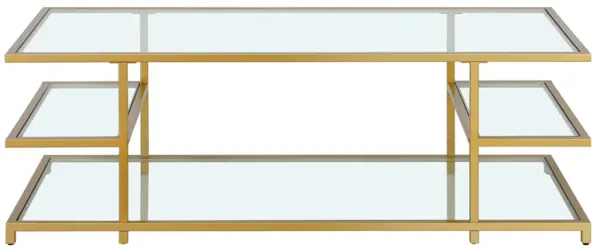 54" Glass And Steel Coffee Table With Two Shelves - Gold