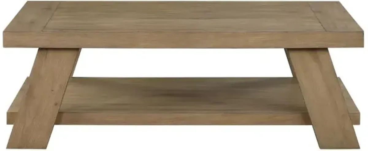 Payne Wood Coffee Table with Shelf Distressed Brown