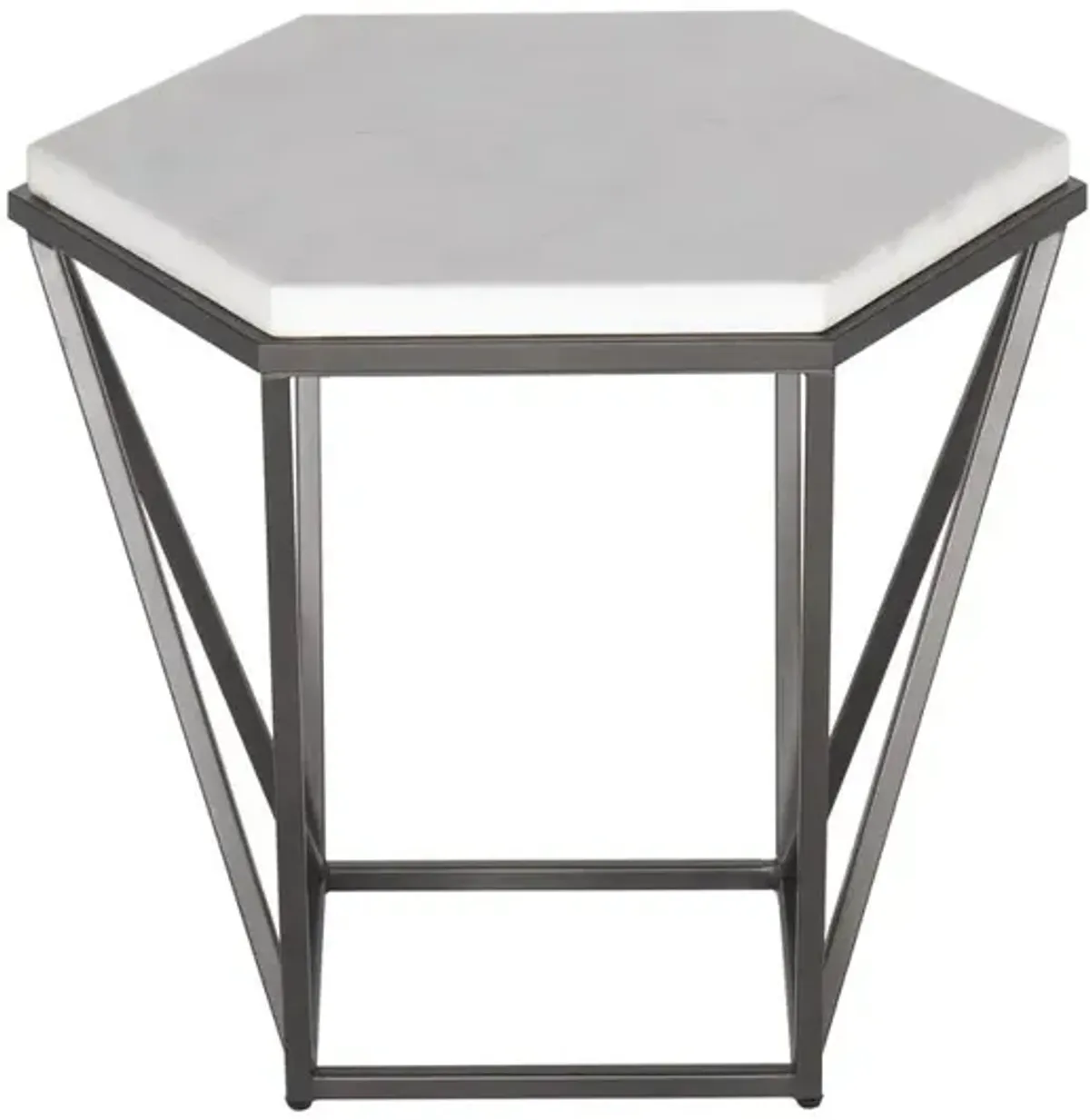 2-Tier Side Table with Metal Frame and Marble Finish Tabletop for Living Room