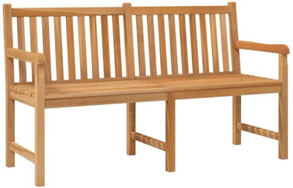 Outdoor Bench, Natural Brown Teak Wood Frame, Slatted Design, 45 Inch - Benzara