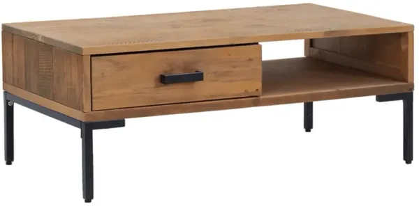 Retro Rectangular Coffee Table with Drawer and Storage Shelf-Rustic Brown