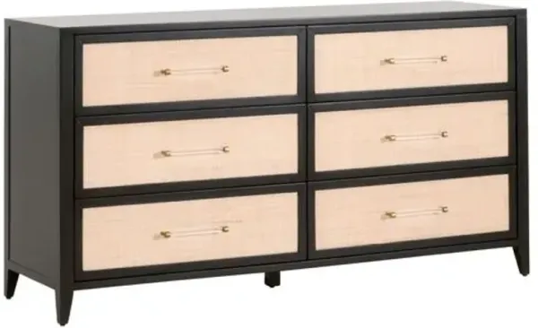 Dalton Rattan 6-Drawer Dresser - Brushed Black/Natural