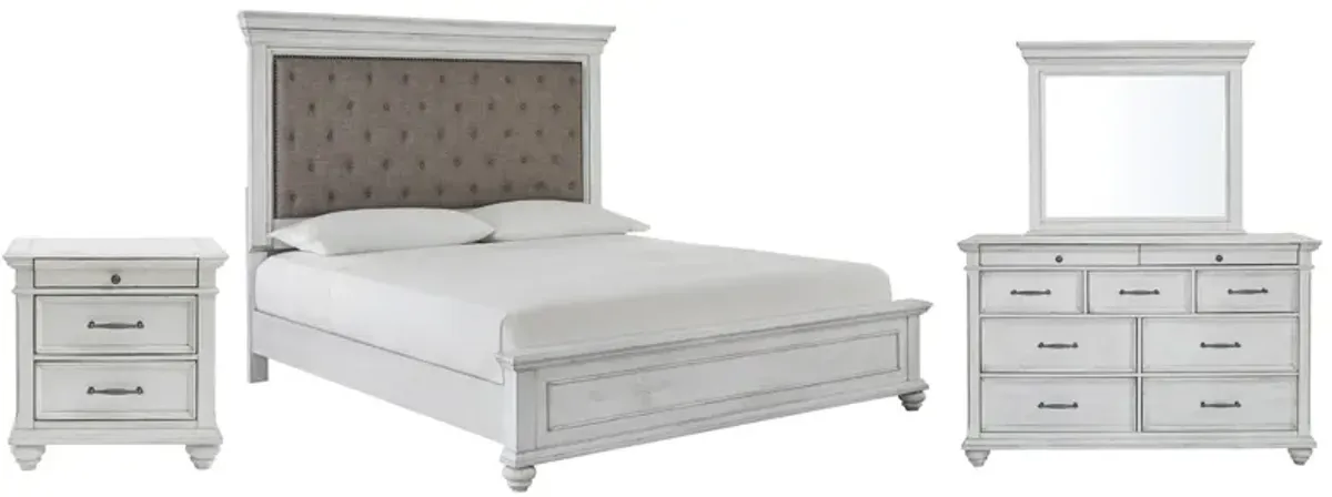 Signature Design by Ashley® Realyn 4-Piece Chipped White King Upholstered Panel Bed Set