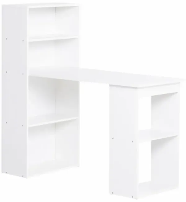White Multitasking Desk: Modern Computer Workstation with 6-Tier Shelves