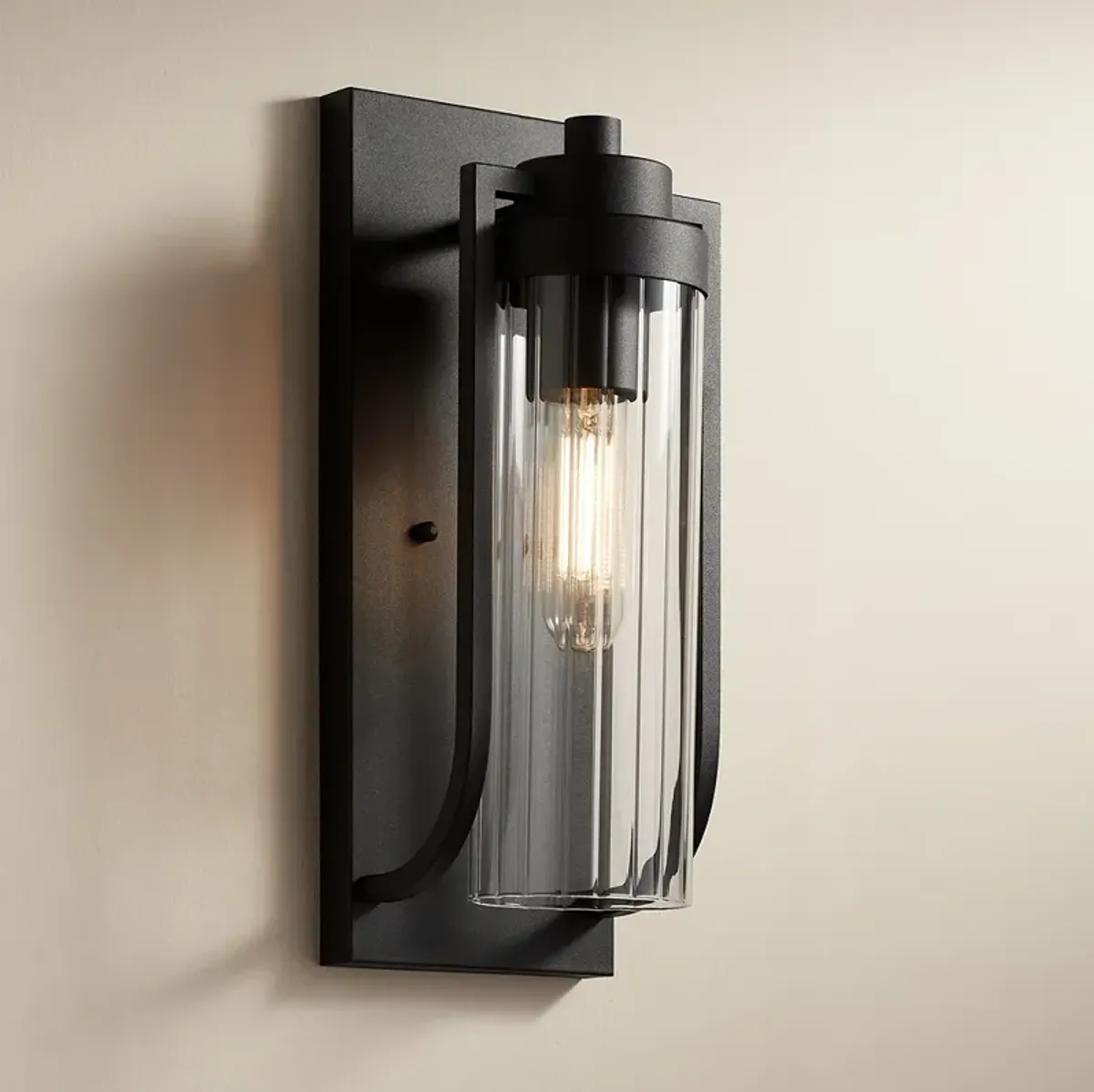 Possini Euro Bogata 15 1/2" High Black and Ribbed Glass Wall Sconce