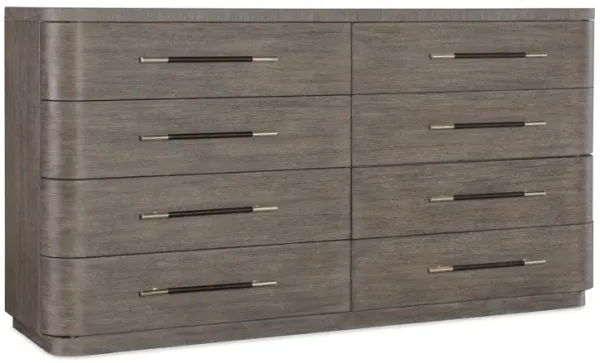 72"W x 19"D x 38"H Product weight: 287 lbs. Unbound by geographical design, Modern Mood presents itself as an evolution of design choices, spanning a variety of decades and design movements, while maintaining an unmistakably modern aesthetic that transcends time. Finish: Mink finish: flat cut quartered oak veneers with wire-brush detailing in a dark, earthy brown with notes of black delivering a timeless aesthetic. Warm pewter bar pulls wrapped in leather. Eight self-closing drawers Top two drawers have drop-in felt liners Removable jewelry tray in top right drawer Bottom two drawers are cedar-lined Levelers Rounded corners Manufacturer's 1-year limited warranty, Wood/oak veneer