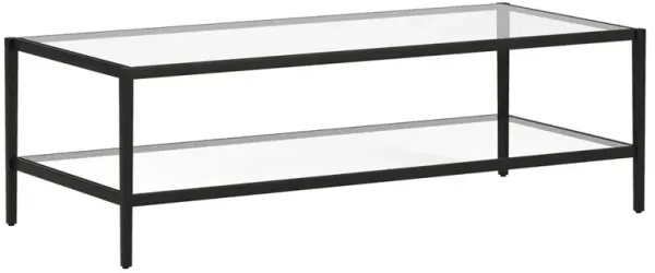 Hudson&Canal Hera 45'' Wide Rectangular Coffee Table with Glass Shelf in Blackened Bronze