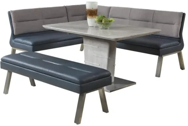 Camie 4pc Corner Breakfast Nook Set, Gray Brown Dining Table and Bench - Benzara