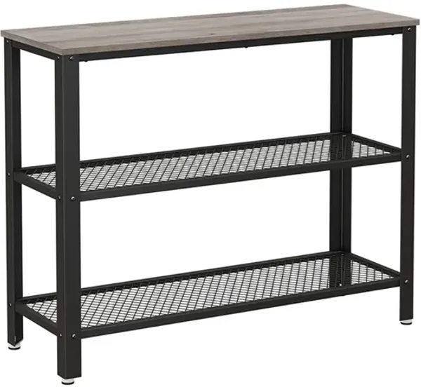 Industrial Console Table, Hallway Table with 2 Mesh Shelves