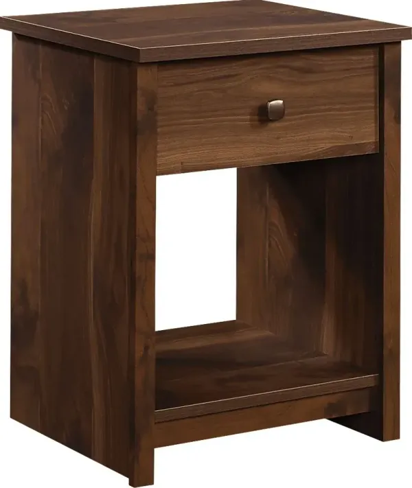 The Ingeborg light brown nightstand has a drawer that features metal runners, and safety stops and holds remotes, glasses and more. An open shelf provides additional storage for books, decor, and more. Finished on all sides for versatile placement with a polished look from every angle. Quick and easy assembly with T-slot drawer system and slide-on moldings. Customer assembly is required.