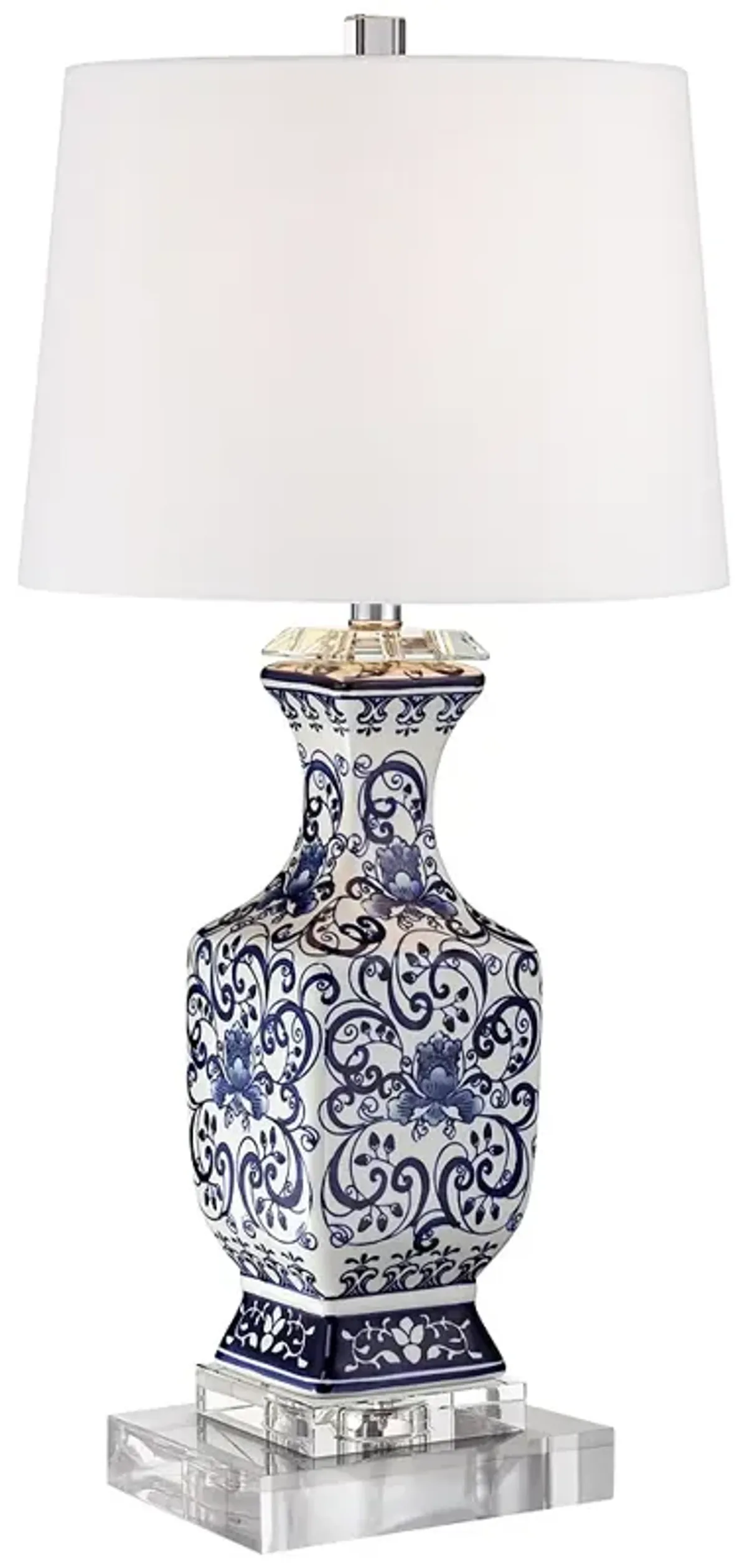 Barnes and Ivy Iris 29 1/2" Porcelain Lamp with Square Acrylic Riser