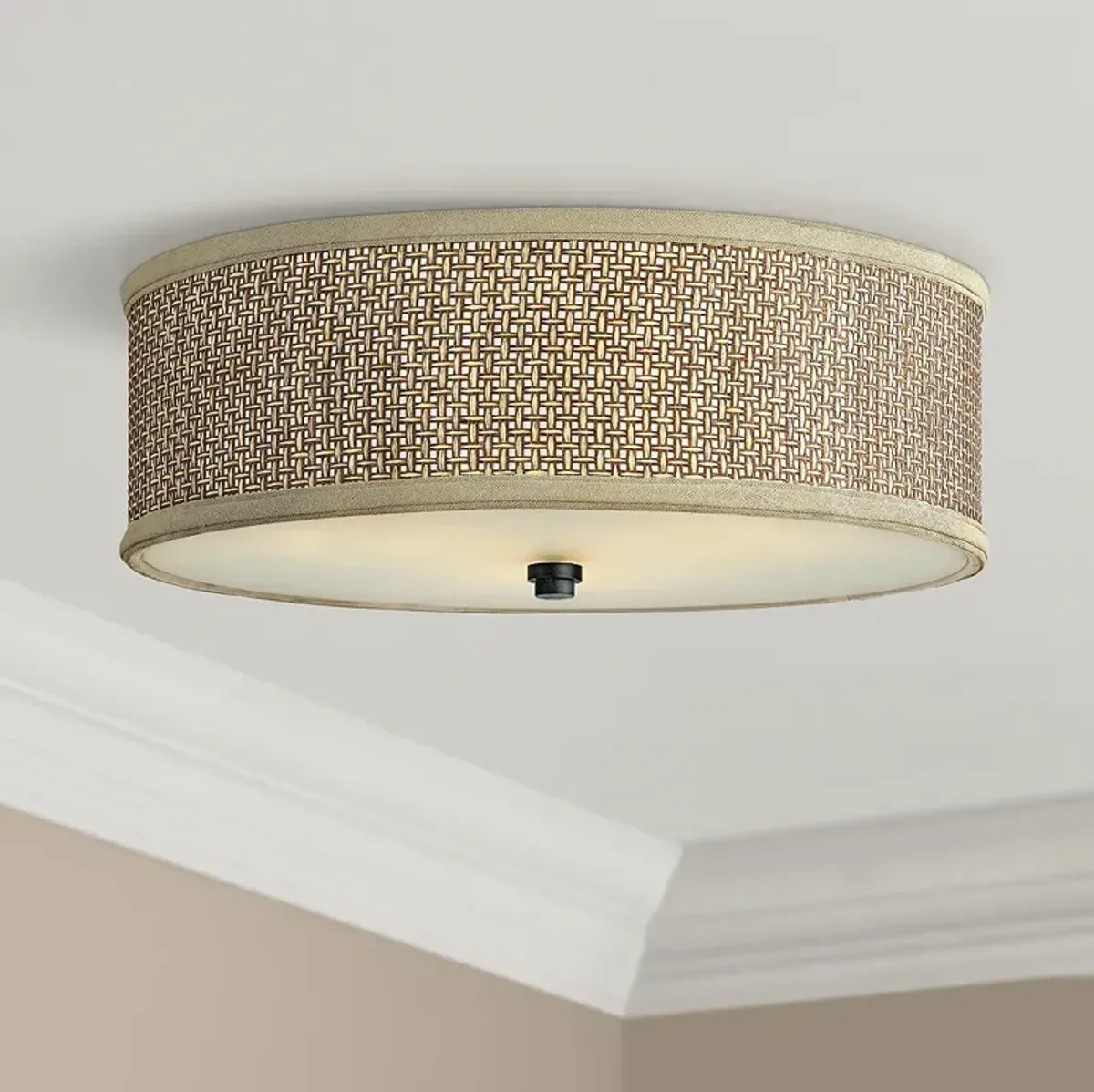 Quoizel Zen 17" Wide Flushmount Drum Woven Rattan Ceiling Light