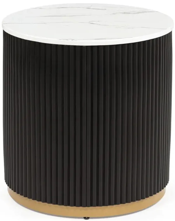 Ferrus Fluted 18" Round Marble Top End Table - Black