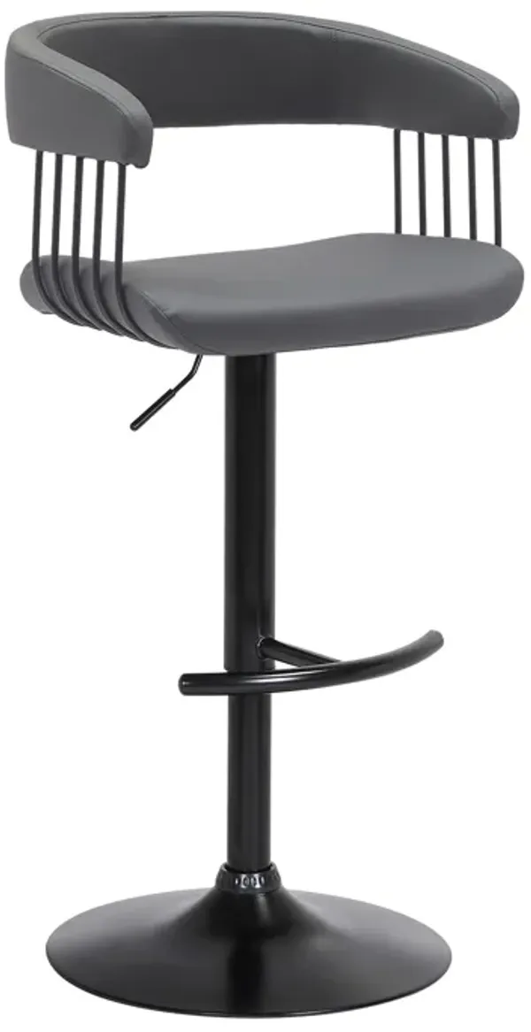 Calista Adjustable Bar Stool in Gray Faux Leather with Black Metal