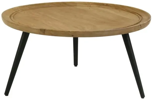 Pilar Round Solid Wood Top Coffee Table Natural and Black