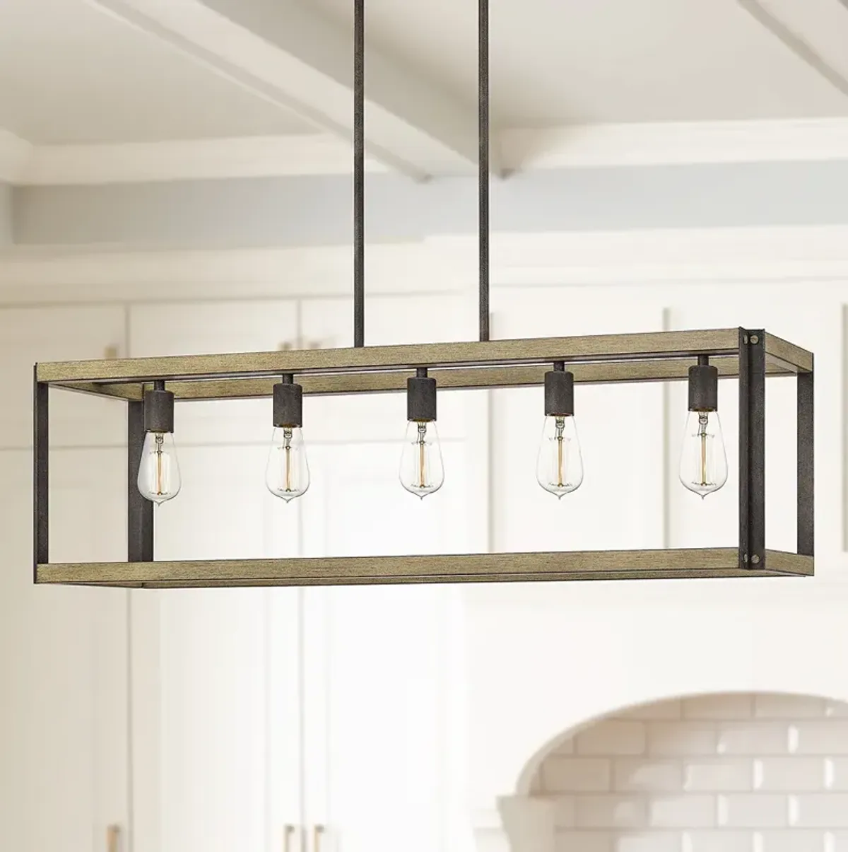 Quoizel Finn 42" Wide Rustic Black 5-Light Island Pendant