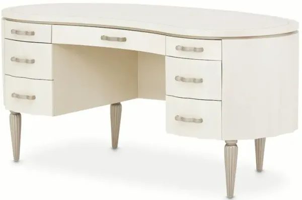 Antoine Home Office Desk, 5 Drawer, Pearl White Wood Gold, 74 Inch - Benzara