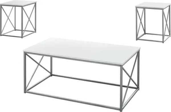 Julius Coffee Table and 2 End Tables - White/Silver
