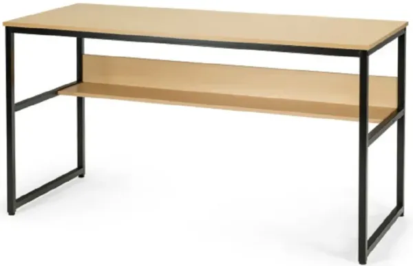 Rary Computer Writing Desk, 47 Inch, Black Metal, Dark Brown Wood Top - Benzara