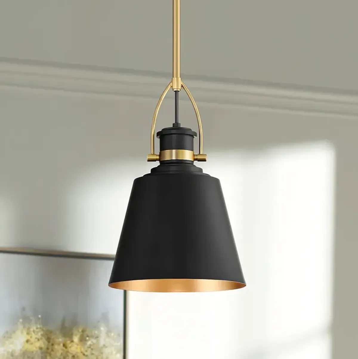 Stamford 9" Wide Brass and Matte Black Mini Pendant
