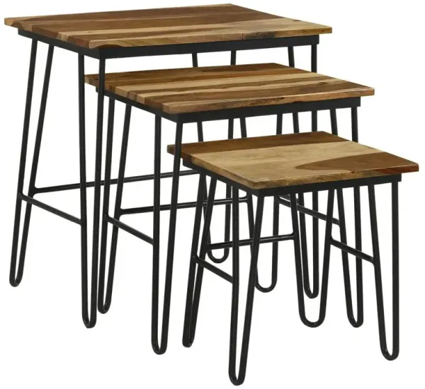 Nayeli 3-piece Nesting Table with Hairpin Legs Natural and Black