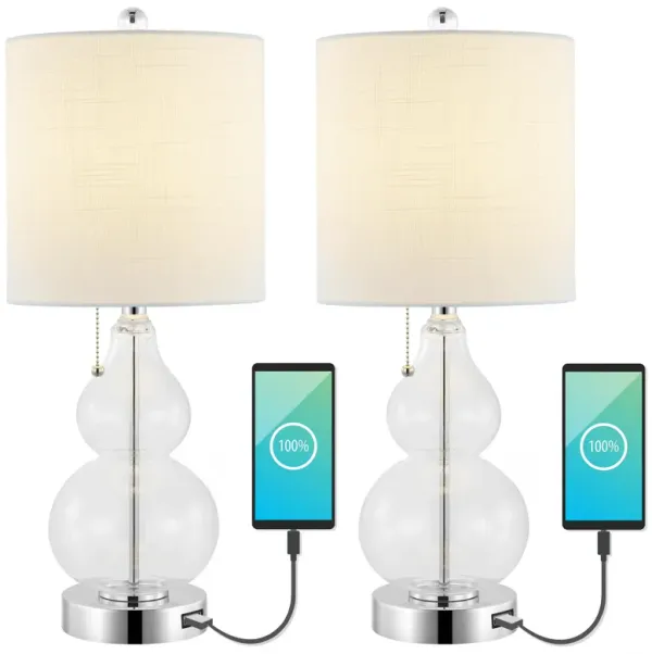 Cora Classic Vintage Glass LED Table Lamp with USB Charging Port (Set of 2)