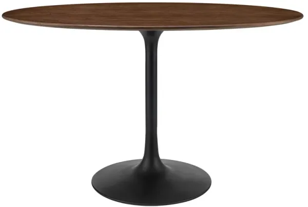 Let modern inspiration flow while gathered around the Lippa 48" Round Dining Table. Perfect for entertaining family and friends or everyday dining, this pedestal table comfortably seats four. Its round tabletop is crafted with MDF with a walnut wood veneer and beveled edge for a contemporary yet timeless design. Embodying an iconic mid-century silhouette, this pedestal dining table floats on a sleek tapered metal pedestal base with a chip-resistant black powder-coated finish. Includes non-marking felt pad to protect flooring. Assembly required., Set Includes:, One - Lippa 47" Round Dining Table Some assembly required.