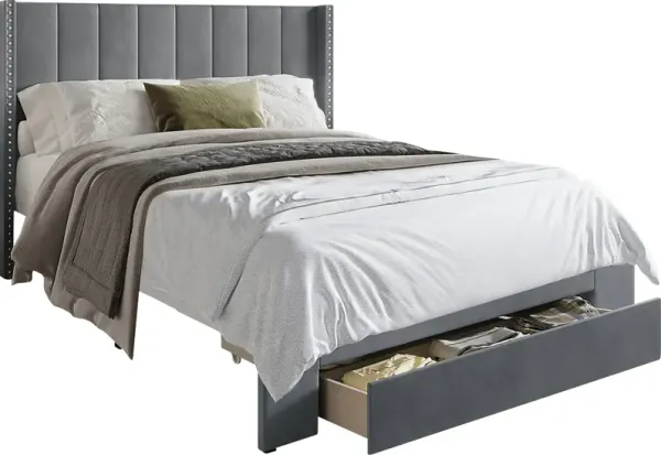 Nessie Queen Upholstered Bed - Gray Velvet