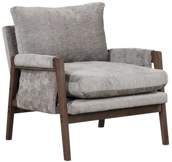 Lissa Accent Chair, Charcoal Gray Soft Cushioning, Brown Wood Frame