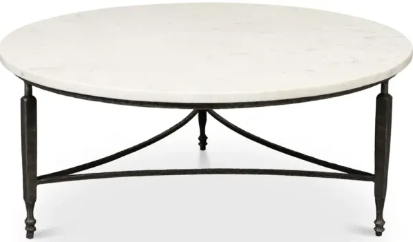 Manilyn French Country White Marble Black Iron Round Coffee Table