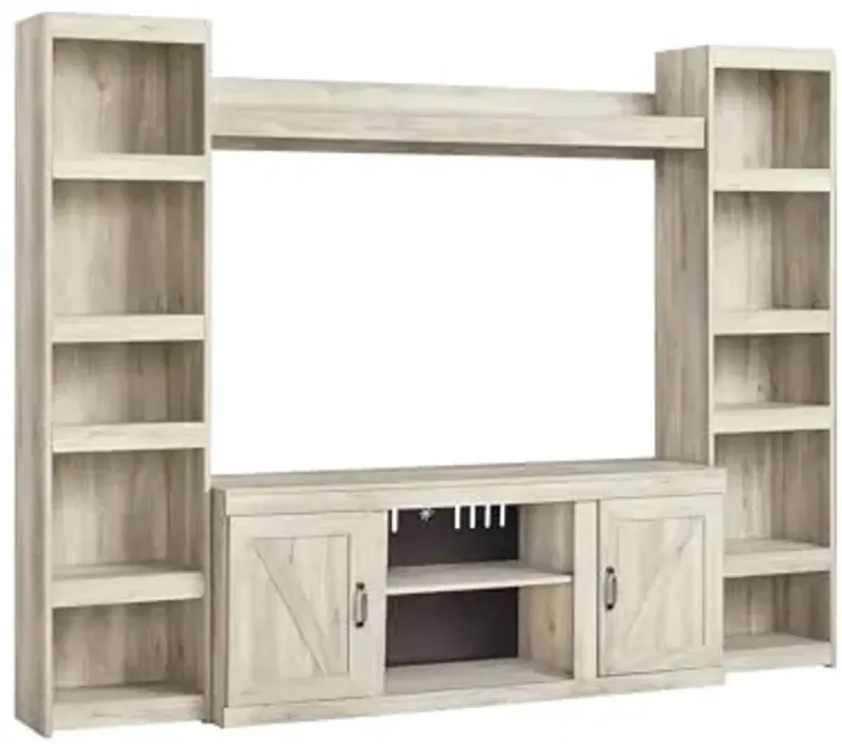 Manhattan Comfort Dumbo Mid Century Modern TV Stand for Televisions up to 80 Inches, Home Entertainment Center with Storage, 6 Shelves, 2 Drawers, No Tool Assembly, 85" Wide, White