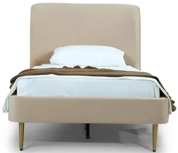 Manhattan Comfort Heather Twin Bed Frame with Headboard, Luxurious Velvet Upholstery, Curved Wingback Headrest, Mid Century Modern Design, No Box Spring Required, Slats Included, Taupe