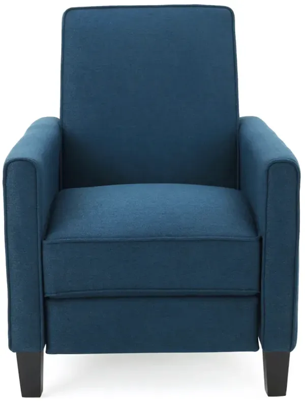 Glider Recliner Chair, Pillow Top Arms, Compact Profile, Blue Fabric - Benzara