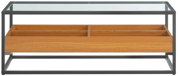 46" Glass And Steel Coffee Table With Shelf - Black And Clear