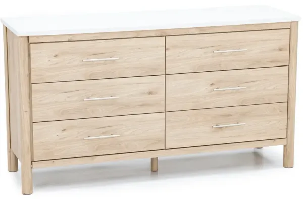 Hourra 6-Drawer Double Dresser, Soft Elm and White