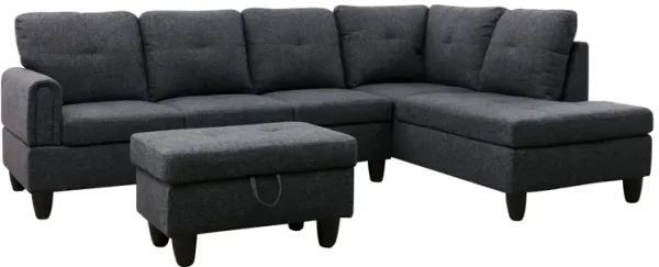 97 in. W Square Arm 3-piece L Shaped Linen Modern Sectional Sofa in Black Gray with Storage