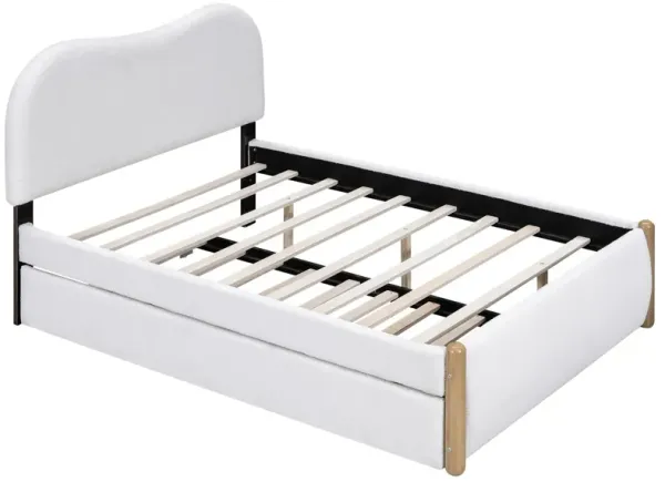 Modern Upholstered Bed with Wood Support Legs and Pull-Out Trundle