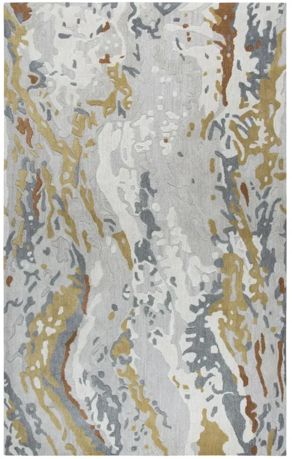 Mod Gray/Beige Abstract Wool/Tencel 5' x 8' Rectangle Rug