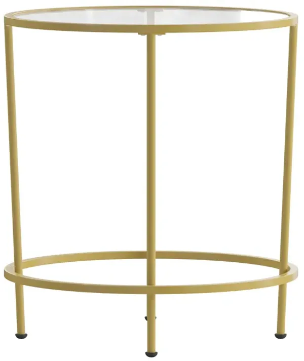 Kin 22 Inch End Table, Round Metal Frame, Tempered Glass Shelf, Gold-Benzara