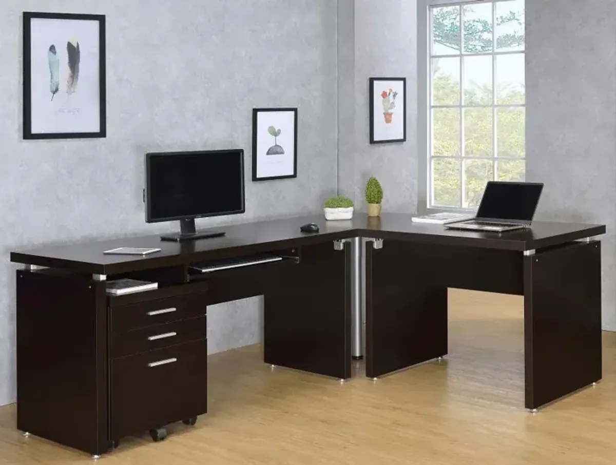 Monterey 3-piece L-shaped Computer Desk Set Cappuccino