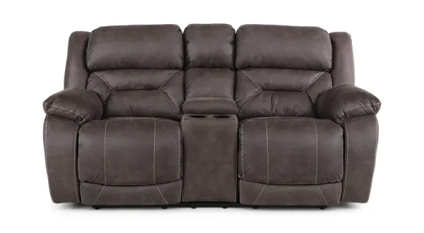 HUDSON CHOCOLATE LEATHER RECLINING LOVESEAT WITH CONSOLE