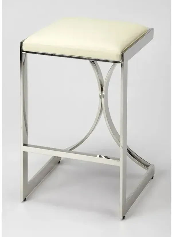Backless Counter Height Bar Chair - White / Silver