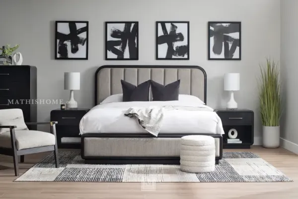 Easton Upholstered Bed, Dresser, Mirror & Nightstand in Espresso, Eastern King